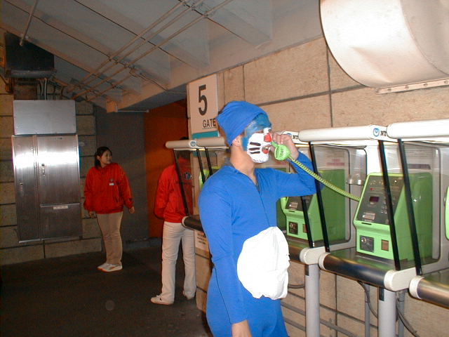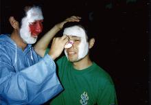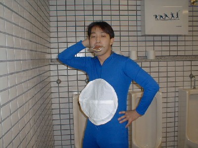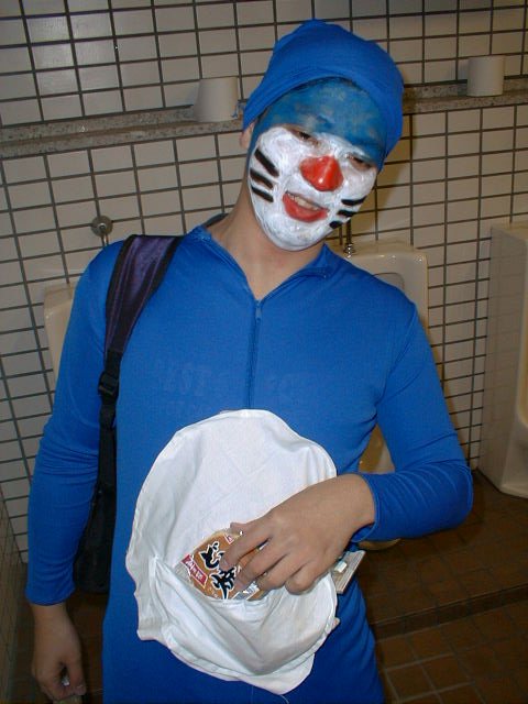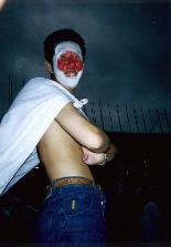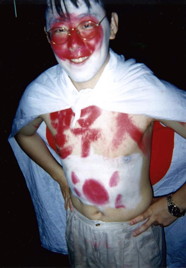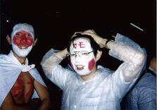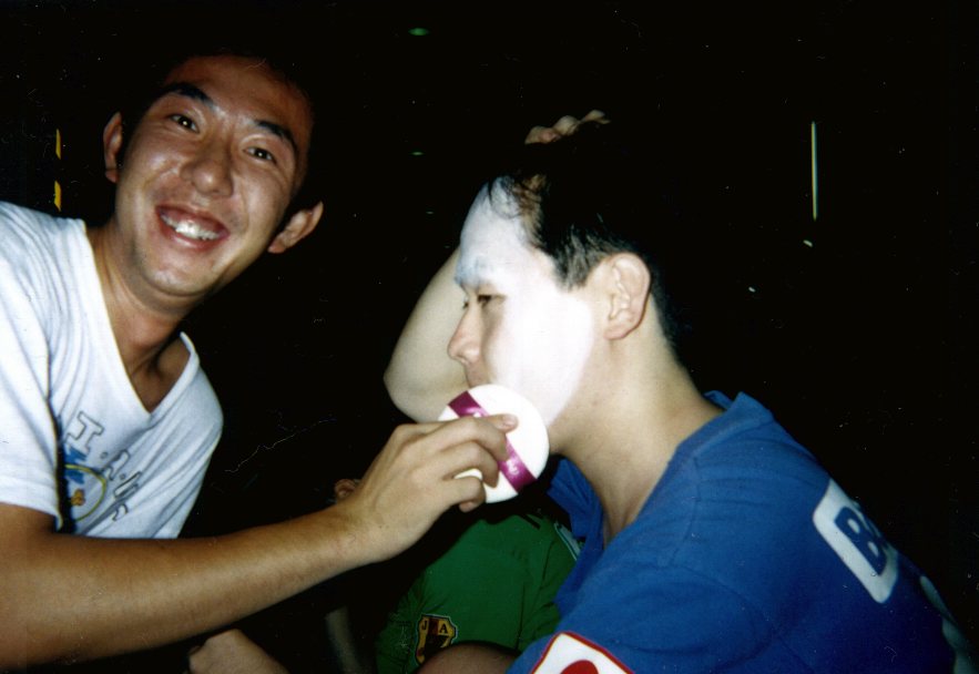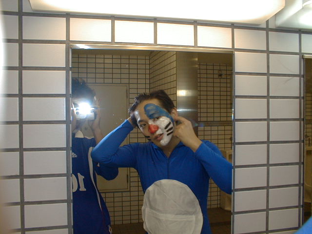 結局全員が終了した時点では、筆舌に尽くし難いかわいそうなペインティングを施された奴も出てきた。中にはキカイダーの死神博士見たいになってる奴までいた。(下の写真参照)先ほどまで痛いほど突き刺さっていた周りの視線もこのころには幾分和らいできた。周りの奴等の考えが興味本位から危ない奴等だ目を合わすなという考えに変わってきたからだ。