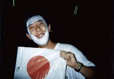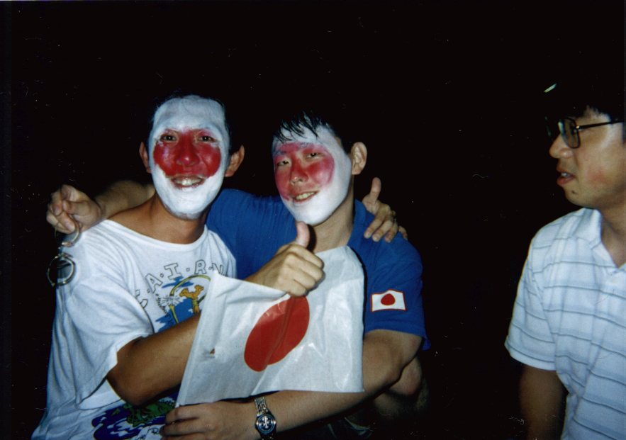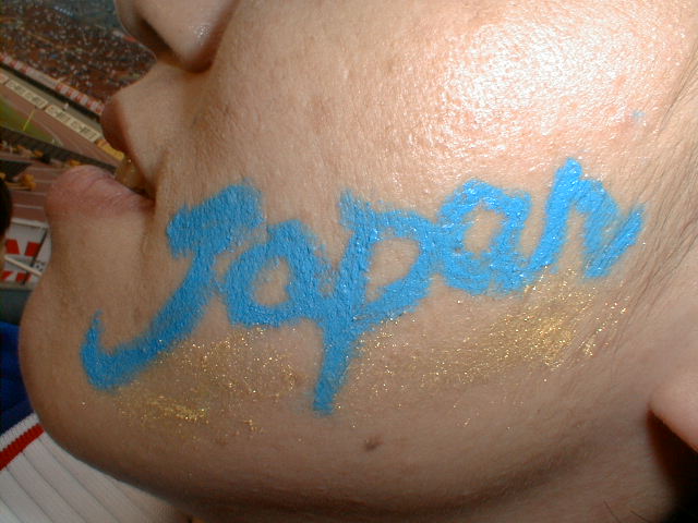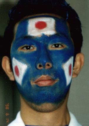 で、そのときにおれの心の中でひとつの疑問が浮かんだ。日本はどのようになるのだ?白地に赤丸ということは顔を真っ白に塗って真中だけ赤くするのか?何かめちゃくちゃカッコ悪くねーか?いいなあイングランドは白地に赤十字で...