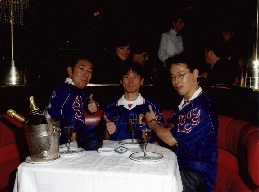そしてこれがLIDOにユニフォームで初めて入った人達の画像である。( ユニフォームにシャンパンがフランスワールドカップの雰囲気をかもし出してるぜー。)
