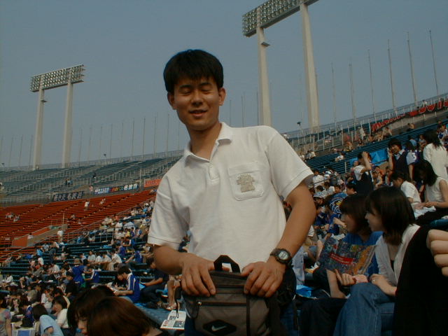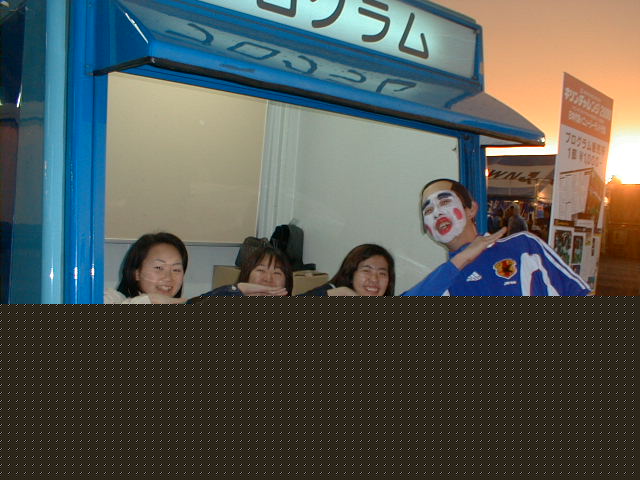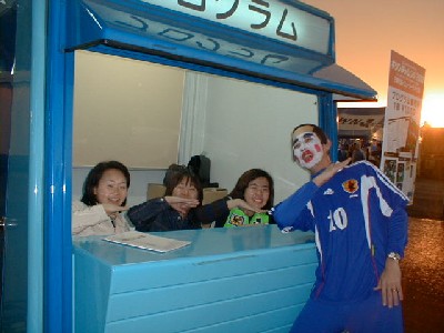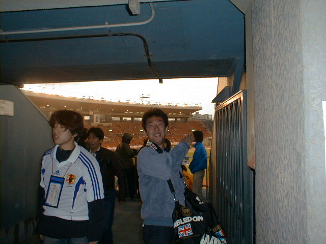 そんな奴等を尻目にスタジアムに足を進める。おれがスタジアムに着いたときはすでに千駄ヶ谷門は開門されており、きっぺーはスタジアムの中にはいっていた。仕方がないので近くの電話ボックスできっぺーと連絡をとり、千駄ヶ谷門のところで待ち合わせをすることにした。スタジアムの周りをてくてく歩いていると後ろから声をかける奴がいる。きっペーかと思いきやそれは見知らぬ奴だった。聞くところによるとチケットいりませんかということらしい。しかもただで!彼等が言うには、ダフ屋に売るくらいなら本当に日本を応援してくれる人に渡して応援してほしいということらしい。うっうっうっ。おれは今モーレツに感動している。ありがとう、君の気持ちを決して無駄にはしない。しかし、ただってのはあんまりだから千円あげるよ。