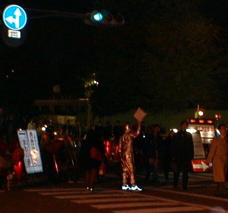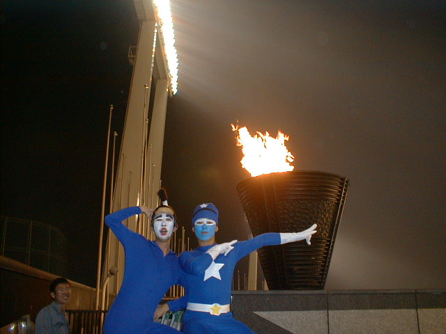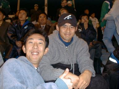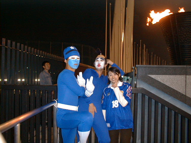 そして、とうとう実際に国立の炎を操っているにーちゃんとの3ショットに成功。俺達は炎匠の山田さんと呼ぶことにした。もし本当の名前を知っている人は1高木ファンまでメール下さい。バカ殿の胸にぶら下がっているのが炎匠の称号の通称「炎パス」である。中田の「キラーパス」と対になっている。ってそんなわけはない。