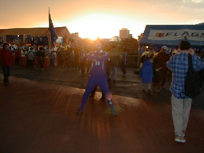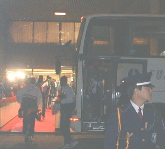 さすが人気カード、マニアの中では有名な宇宙人までもがチケットを探していた。 試合がせまるにつれ続続と選手が訪れた。超見え難いがバスから下りてきたのはアスプリージャ そしてTOYOTAの社長さん、写真は撮り損ねたがプラティニやジョージベストが来たのには驚いた。