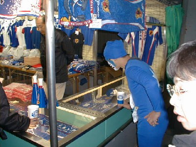 ハンズ1Fカウンターのネーちゃんの的確な指示でペインティンググッズの場所はすぐに分かった。ひとえにペインティンググッズといっても種類がたくさんあるようだ。良く見るとどれも結構高い。さらに、化粧などしたことがないのでどれくらいの量があればいいのか見当もつかない。ネーちゃんに聞くのもいいが、ちょっと恥ずかしい。そこで、適当に赤と白の丸いやつを2個づつ買った。さあ行くか!多分先発隊が早朝から千駄ヶ谷門にならんでいるはずだ。アルタ前で待ち合わせしてる中谷と合流して奴等の分と俺達の分の弁当も購入して準備万端、いざ国立へ!