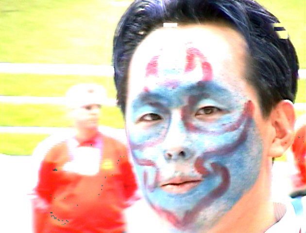 試合直後のきっぺー、ちょっとペインティングが落ちてきてる。